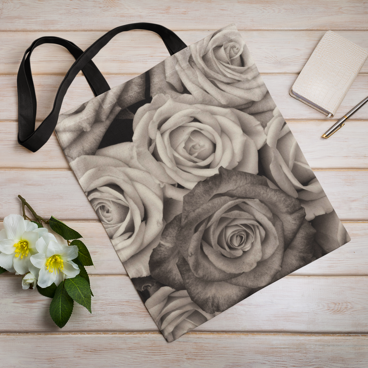 Lina vai kokvilnas auduma maisiņš «Rozes» | Kolekcija «Melnbalts»