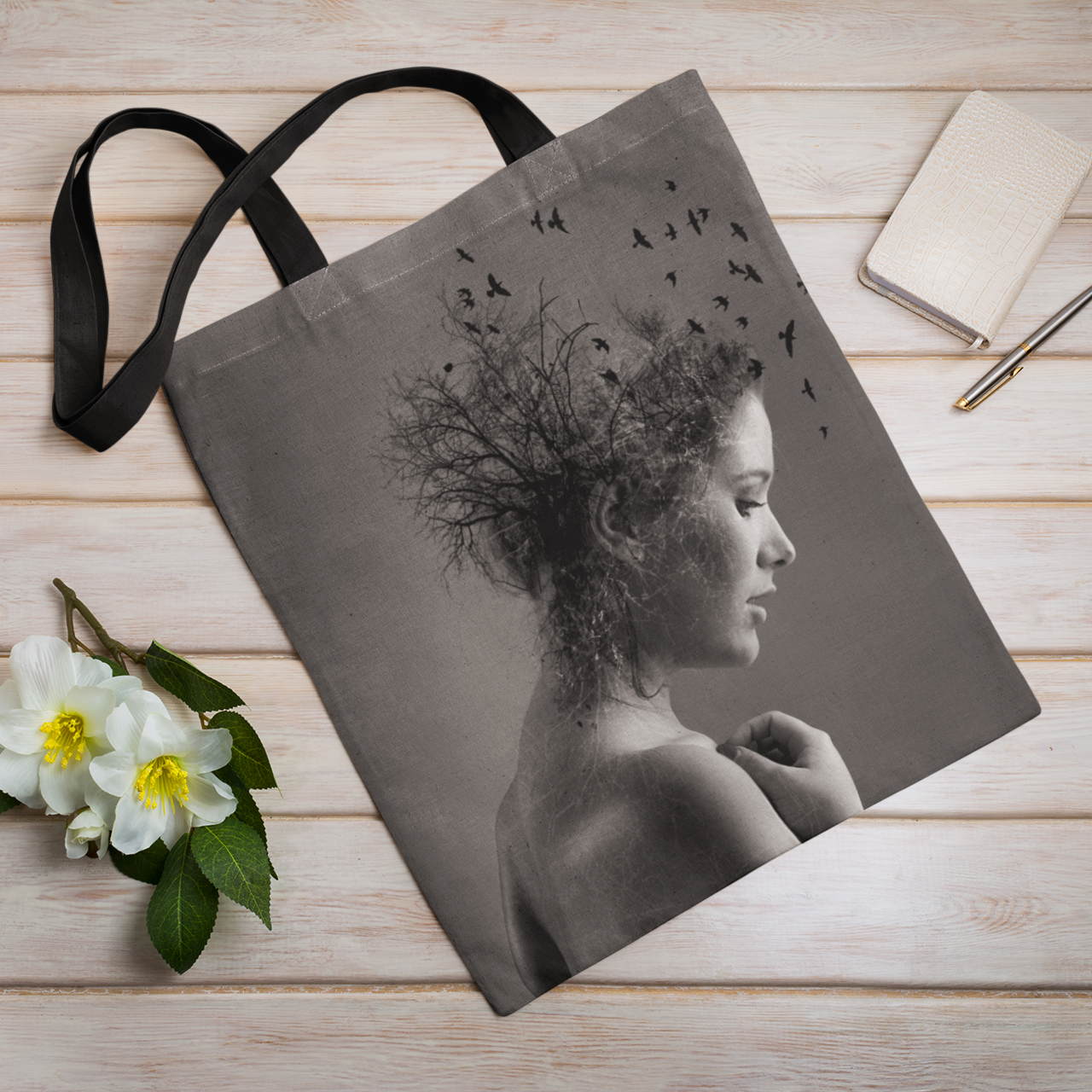 Auduma maisiņš jeb taša izgatavota no augstas kvalitātes puslina vai kokvilnas auduma un apdrukāts ar videi draudzīgām pigmenta krāsām tiešās digitālās drukas tehnikā.